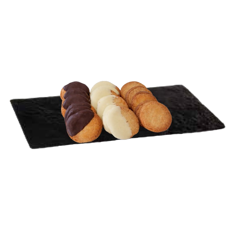 BANDEJA 18 UDS. PASTAS DE MANTEQUILLA (SIN BAÑO, CON CHOCOLATE Y CON CHOCOLATE BLANCO)